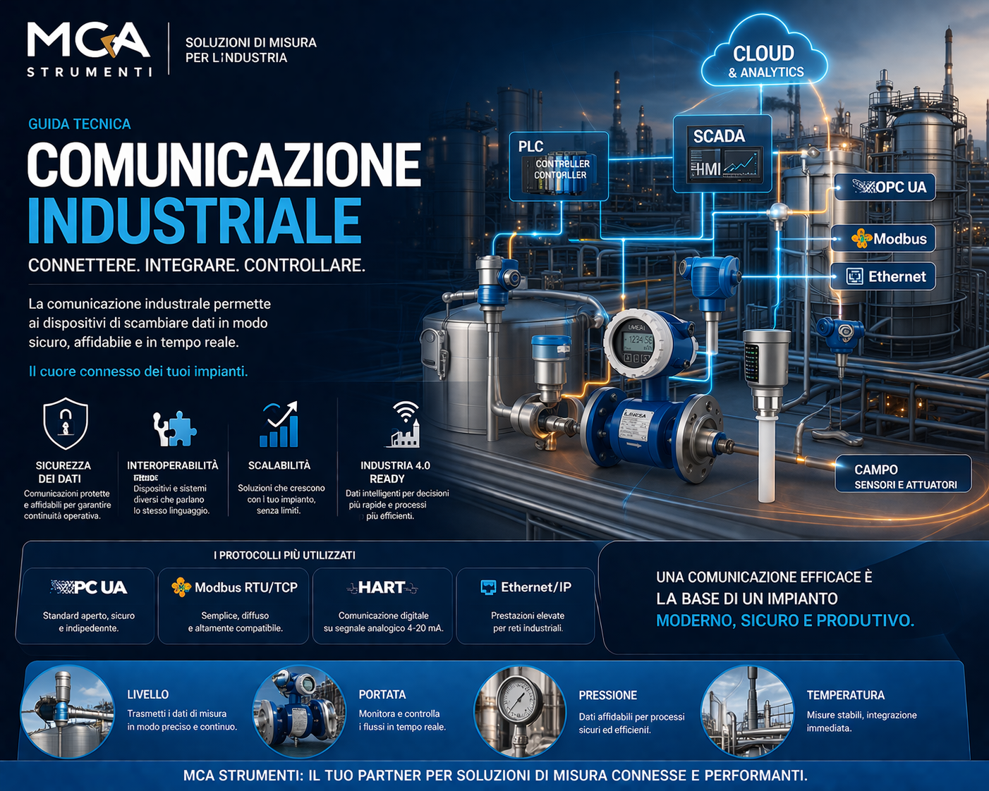 MCA supporta la progettazione di architetture industriali coerenti, dalla sensoristica fino all’integrazione dati.