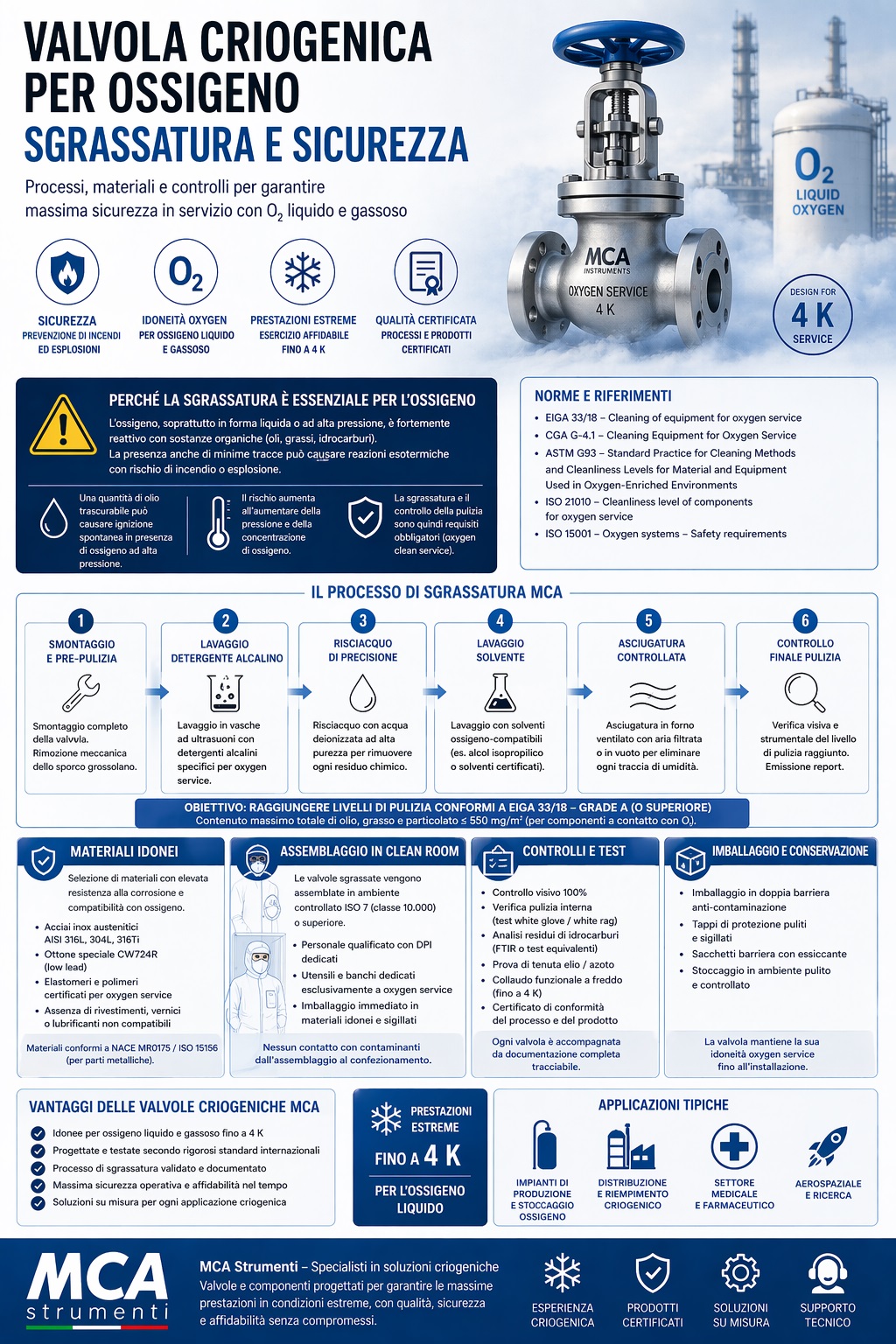 L'ossigeno liquido è un comburente fortissimo e la presenza di residui organici su una valvola o su una tubazione può generare condizioni di rischio gravissime.